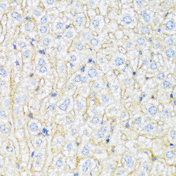 Immunohistochemistry of paraffin-embedded mouse liver using ABCA6 antibody at dilution of 1:100 (40x lens).