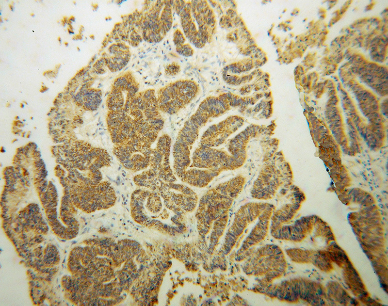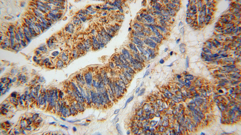 Immunohistochemical of paraffin-embedded human liver cancer using Catalog No:107808(ABCG4 antibody) at dilution of 1:50 (under 40x lens)