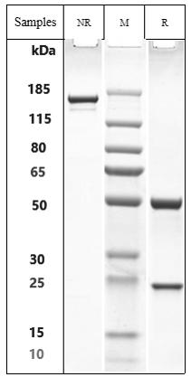 Anti-Cdiff Toxin A Antibody (actoxumab) on SDS-PAGE under reducing (R) condition. The purity of the protein is greater than 95%.