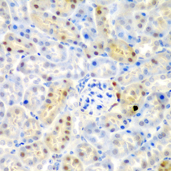 Immunohistochemistry of paraffin-embedded mouse kidney using ADAD1 antibody at dilution of 1:200 (40x lens).