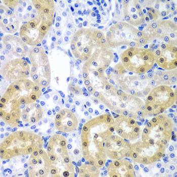 Immunohistochemistry of paraffin-embedded rat kidney using ADAD1 antibody at dilution of 1:200 (40x lens).