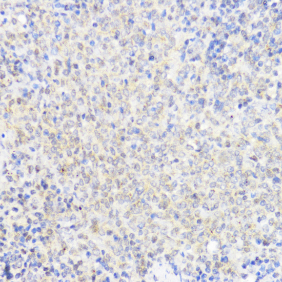 Immunohistochemistry of paraffin-embedded rat spleen using AKT2 antibody at dilution of 1:200 (40x lens).