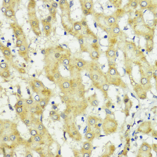 Immunohistochemistry of paraffin-embedded human liver cancer using AKT2 antibody at dilution of 1:200 (40x lens).