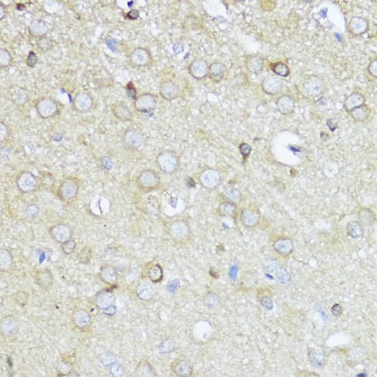 Immunohistochemistry of paraffin-embedded rat brain using AKT2 antibody at dilution of 1:200 (40x lens).