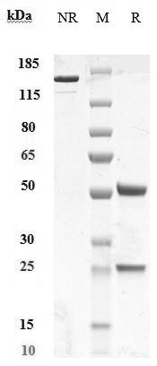 Anti-ICOS / CD278 Antibody (alomfilimab) on SDS-PAGE under reducing (R) condition. The purity of the protein is greater than 95%.