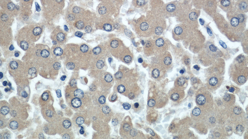Immunohistochemical of paraffin-embedded human liver using Catalog No:107574(SERPINA3,AACT antibody) at dilution of 1:50 (under 10x lens)
