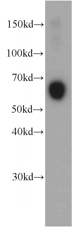 human blood tissue were subjected to SDS PAGE followed by western blot with Catalog No:107574(SERPINA3,AACT antibody) at dilution of 1:1000