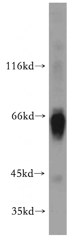 human blood tissue were subjected to SDS PAGE followed by western blot with Catalog No:107861(SERPINA3,AACT antibody) at dilution of 1:500