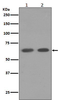 Western blot analysis of AMPK alpha 1 expression in (1) HeLa cell lysate; (2) HepG2 cell lysate.