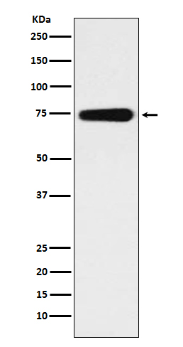 Western blot analysis of BMAL1 expression in human fetal heart lysate.