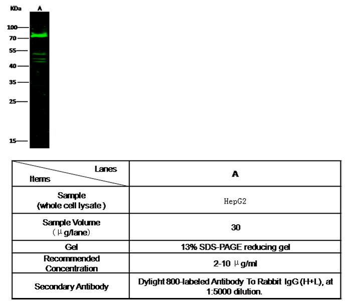 This antibody can be stored at 2℃-8℃ for one month without detectable loss of activity. Antibody products are stable for twelve months from date of receipt when stored at -20℃ to -80℃. Preservative-Free.