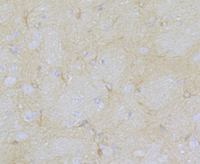 Fig3: Immunohistochemical analysis of paraffin-embedded rat brain tissue using anti-CACNA1C antibody. Counter stained with hematoxylin.