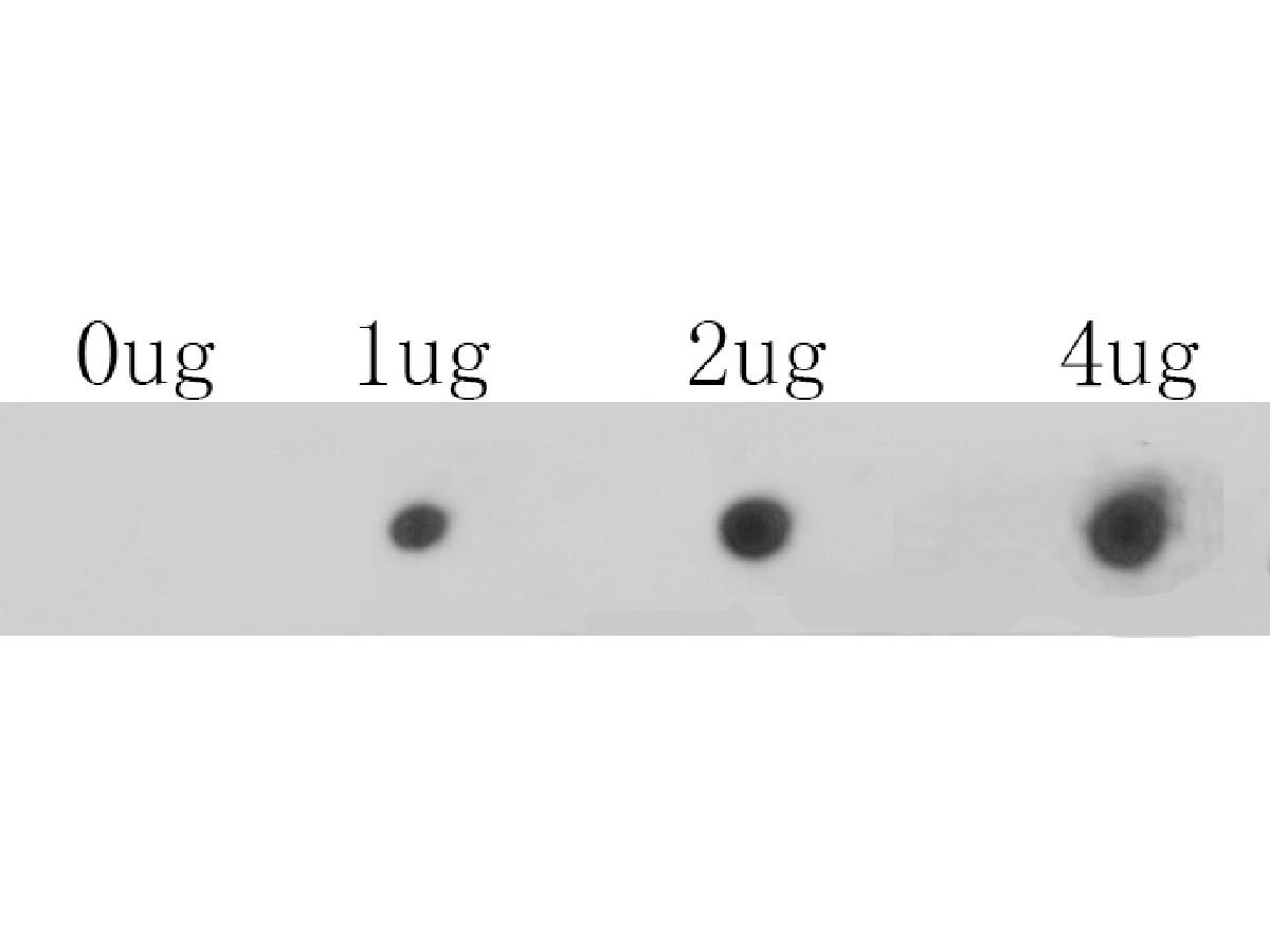 Fig1: Dot blot analysis of anti-CACNA1C on PVDF. 1ug, 2ug and 4ug of immunization peptides were given in this test. Anti-CACNA1C antibody was diluted with 1/500.