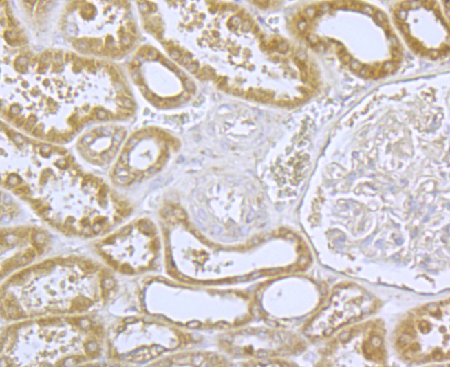 Fig4: Immunohistochemical analysis of paraffin-embedded human kidney tissue using anti-CACNA1C antibody. Counter stained with hematoxylin.