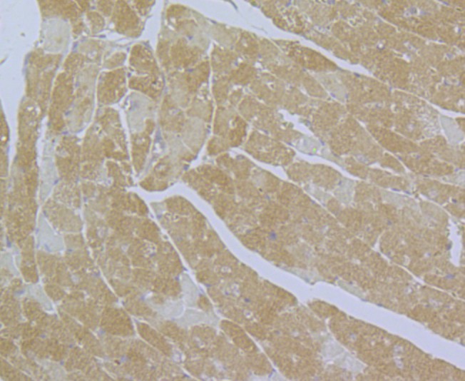 Fig6: Immunohistochemical analysis of paraffin-embedded mouse heart tissue using anti-CACNA1C antibody. Counter stained with hematoxylin.