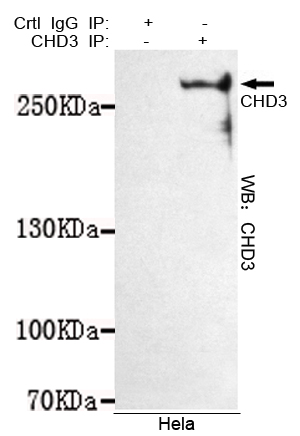 Immunoprecipitation analysis of Hela cell lysates using CHD3 mouse mAb.