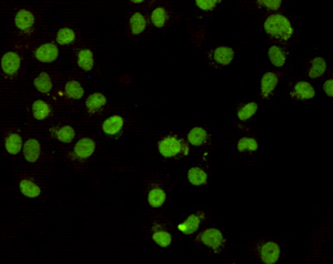 Immunocytochemistry staining of HeLa cells fixed with -20u2103 Methanol and using CHD3 (C-terminus) mouse mAb (dilution 1:400).