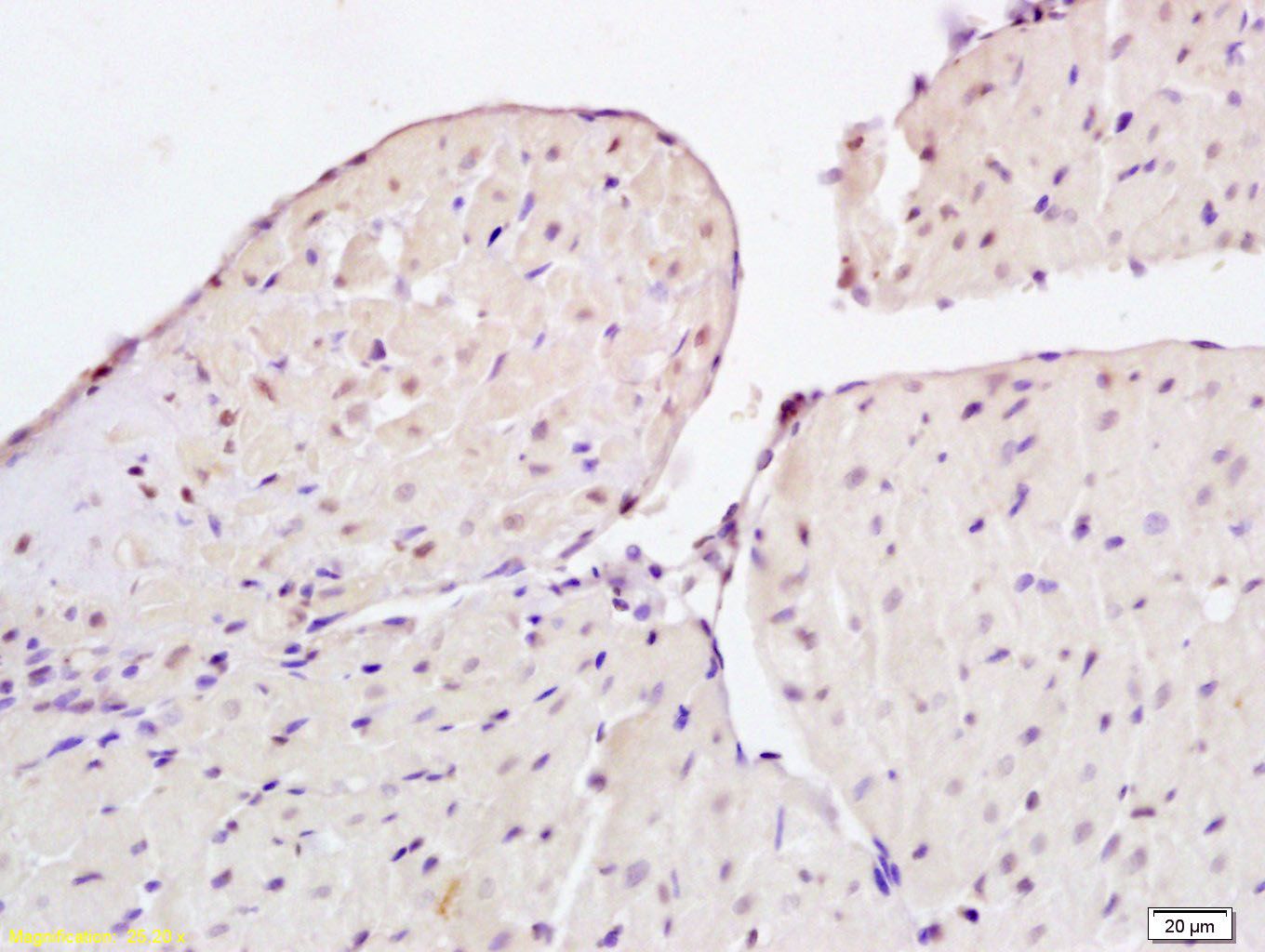 Fig4: Tissue/cell: rat heart tissue; 4% Paraformaldehyde-fixed and paraffin-embedded;; Antigen retrieval: citrate buffer ( 0.01M, pH 6.0 ), Boiling bathing for 15min; Block endogenous peroxidase by 3% Hydrogen peroxide for 30min; Blocking buffer (normal goat serum,C-0005) at 37℃ for 20 min;; Incubation: Anti-CIDEC Polyclonal Antibody, Unconjugated 1:200, overnight at 4℃, followed by conjugation to the secondary antibody(SP-0023) and DAB(C-0010) staining