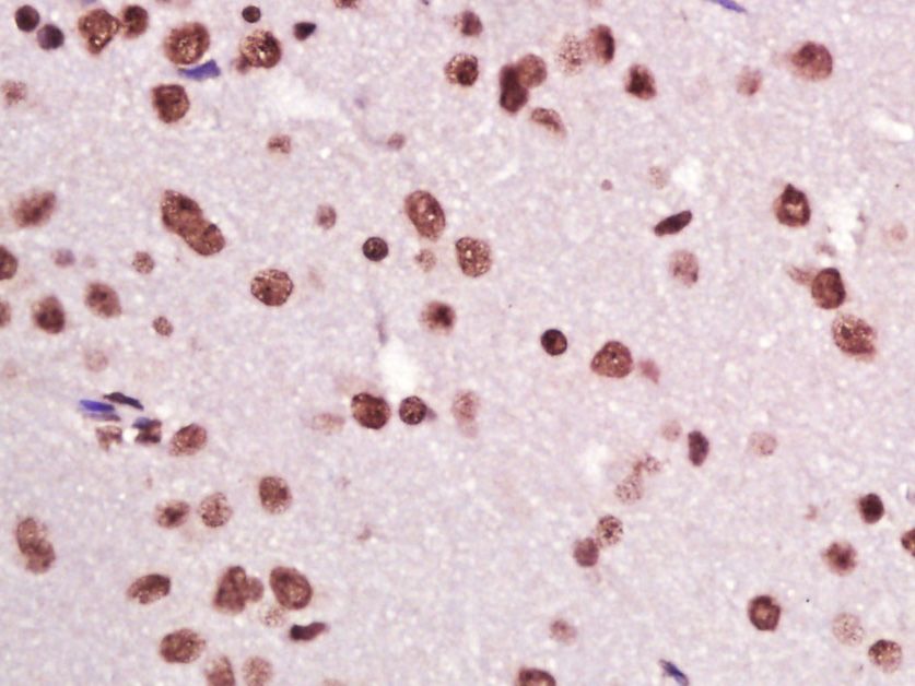 Fig5: Paraformaldehyde-fixed, paraffin embedded (Rat brain); Antigen retrieval by boiling in sodium citrate buffer (pH6.0) for 15min; Block endogenous peroxidase by 3% hydrogen peroxide for 20 minutes; Blocking buffer (normal goat serum) at 37℃ for 30min; Antibody incubation with (CIDEC) Polyclonal Antibody, Unconjugated at 1:400 overnight at 4℃, followed by operating according to SP Kit(Rabbit) (sp-0023) instructionsand DAB staining.