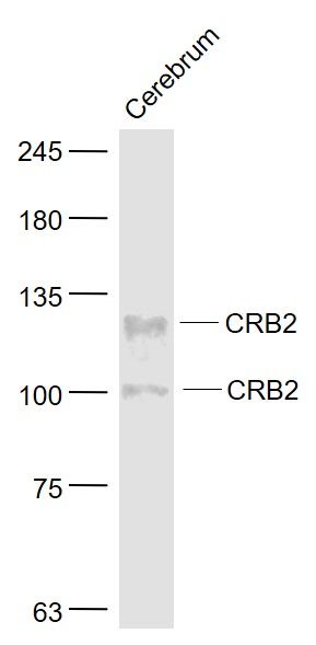 Fig4: Sample:; Cerebrum (Mouse) Lysate at 40 ug; Primary: Anti- CRB2 at 1/1000 dilution; Secondary: IRDye800CW Goat Anti-Rabbit IgG at 1/20000 dilution; Predicted band size: 100,123,131 kD; Observed band size: 100,131 kD