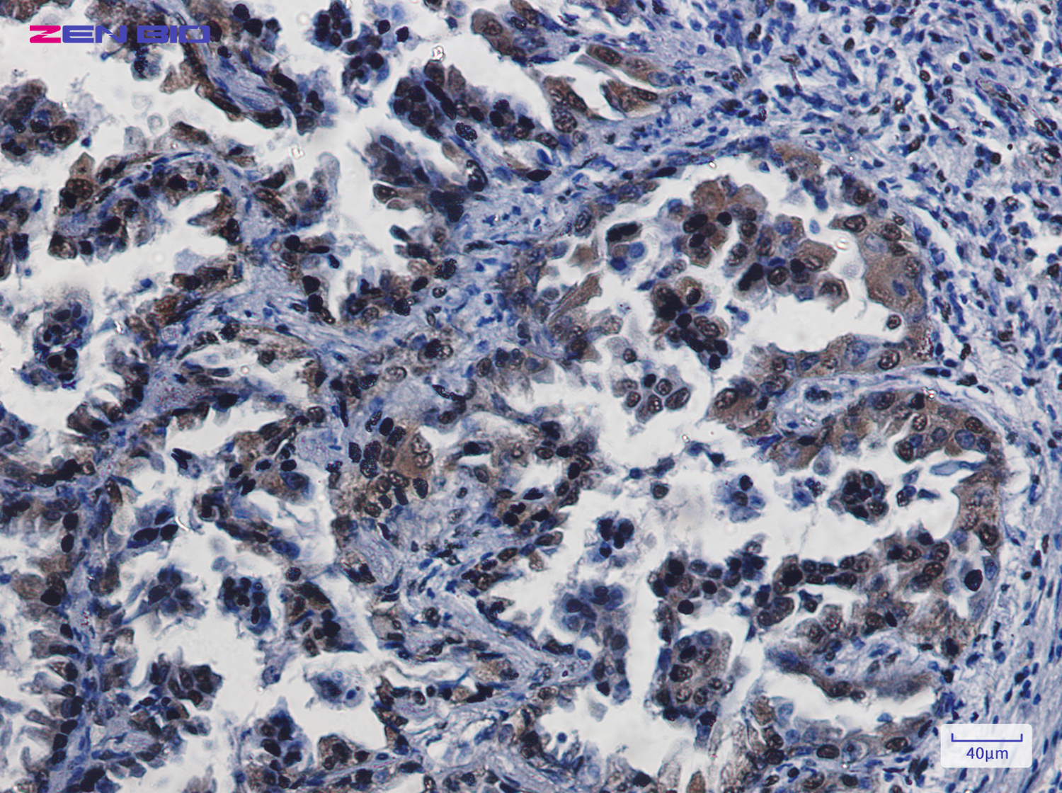 Immunohistochemistry of CREB in paraffin-embedded Human lung cancer tissue using CREB Rabbit pAb at dilution 1/20