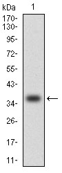 Western blot analysis using CCNE1 mAb against human CCNE1 (AA