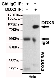 Immunoprecipitation analysis of Hela cell lysates using DDX3 mouse mAb.