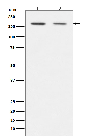 Western blot analysis of Dnmt1 expression in (1) HEK293 cell lysate; (2) NIH/3T3 cell lysate.