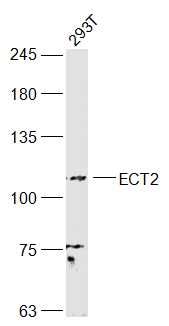 Fig1: Sample:; 293T(Human) Cell Lysate at 30 ug; Primary: Anti-ECT2 at 1/1000 dilution; Secondary: IRDye800CW Goat Anti-Rabbit IgG at 1/20000 dilution; Predicted band size: 100 kD; Observed band size: 108 kD
