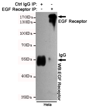 Immunoprecipitation analysis of Hela cell lysates using EGFR mouse mAb.
