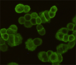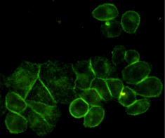 Immunocytochemistry staining of MDA-MB-468 cells fixed with 4% Paraformaldehyde and using EGFR mouse mAb (dilution 1:200).