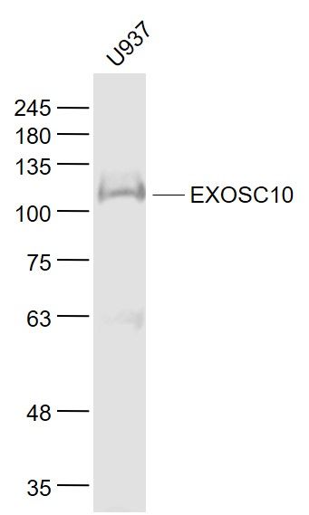 Fig1: Sample:; U937(Human) Cell Lysate at 30 ug; Primary: Anti- EXOSC10 at 1/1000 dilution; Secondary: IRDye800CW Goat Anti-Rabbit IgG at 1/20000 dilution; Predicted band size: 101 kD; Observed band size: 103 kD