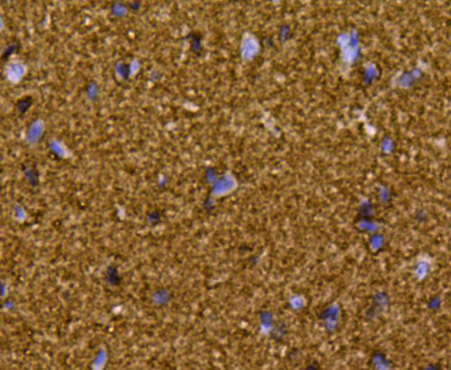 Fig7: Immunohistochemical analysis of paraffin-embedded mouse brain tissue using anti-GAP43 antibody. Counter stained with hematoxylin.