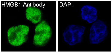 Immunofluorescent analysis of SW480 cells, using HMGB1 Antibody.