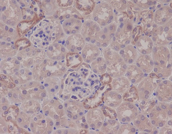 Immunohistochemical analysis of paraffin-embedded mouse kidney, using IKK alpha Antibody.