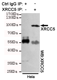 Immunoprecipitation analysis of Hela cell lysates using XRCC5 antibody.
