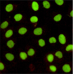 Immunocytochemistry of HeLa cells using Ku80 mouse mAb (dilution 1:100).