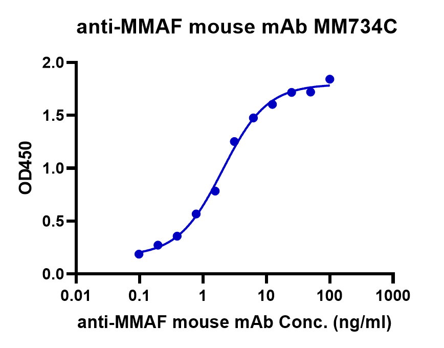 Immobilized MMAF ADC at 2μg/mL (100μL/well) can bind anti-MMAF mouse monoclonal antibody.