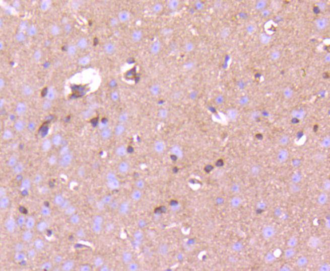 Fig6:; Immunohistochemical analysis of paraffin-embedded mouse brain tissue using anti-Phospho-PAK1(S144)+PAK2(S141)+PAK3(S139) antibody. The section was pre-treated using heat mediated antigen retrieval with Tris-EDTA buffer (pH 8.0-8.4) for 20 minutes.The tissues were blocked in 5% BSA for 30 minutes at room temperature, washed with ddH; 2; O and PBS, and then probed with the primary antibody ( 1/50) for 30 minutes at room temperature. The detection was performed using an HRP conjugated compact polymer system. DAB was used as the chromogen. Tissues were counterstained with hematoxylin and mounted with DPX.