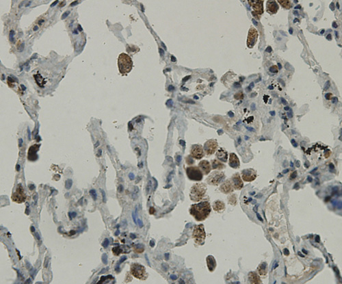 Fig6: Immunohistochemical analysis of paraffin-embedded human lung tissue using anti-C19orf35 antibody. Counter stained with hematoxylin.