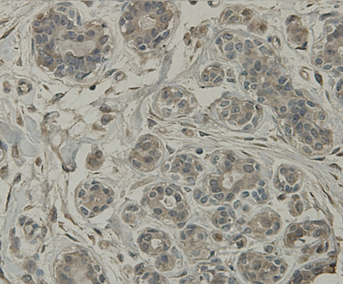 Fig8: Immunohistochemical analysis of paraffin-embedded human breast tissue using anti-C19orf35 antibody. Counter stained with hematoxylin.