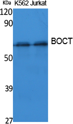 Fig1:; Western Blot analysis of extracts from K562, Jurkat cells, using BOCT Polyclonal Antibody.. Secondary antibody(catalog#: HA1001) was diluted at 1:20000