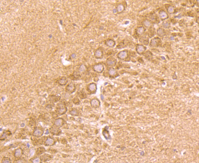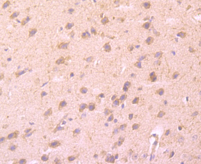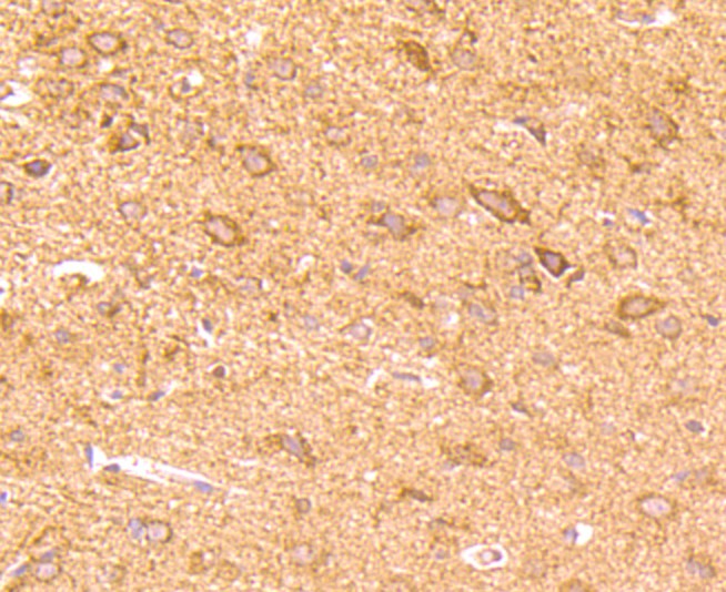 Fig5: Immunohistochemical analysis of paraffin-embedded rat brain tissue using anti-CD137 antibody. Counter stained with hematoxylin.