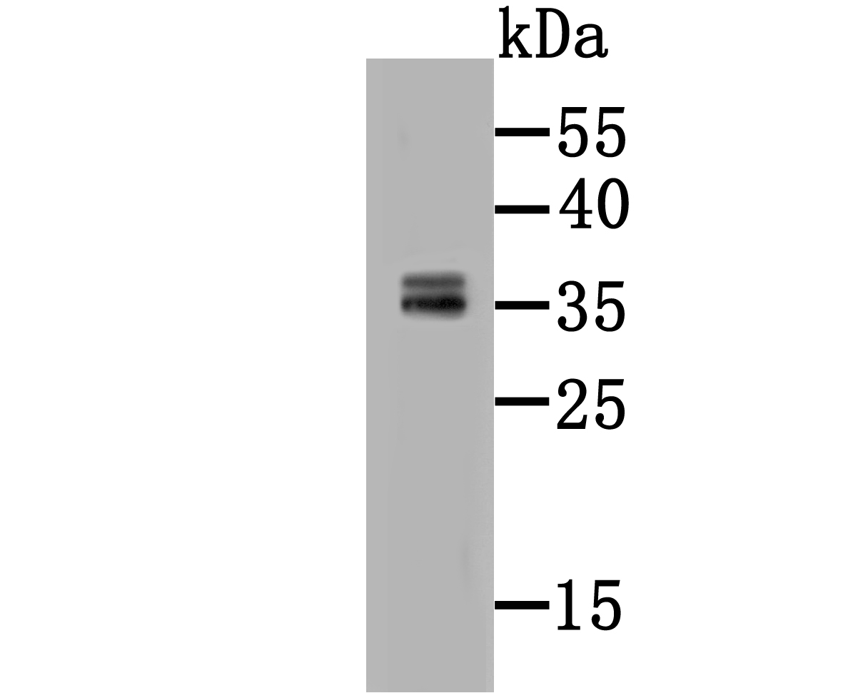 Fig1: Western blot analysis of CD137 on HepG2 cell lysate using anti-CD137 antibody at 1/500 dilution.