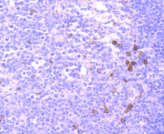 Fig7: Immunohistochemical analysis of paraffin-embedded human tonsil tissue using anti-CD137 antibody. Counter stained with hematoxylin.