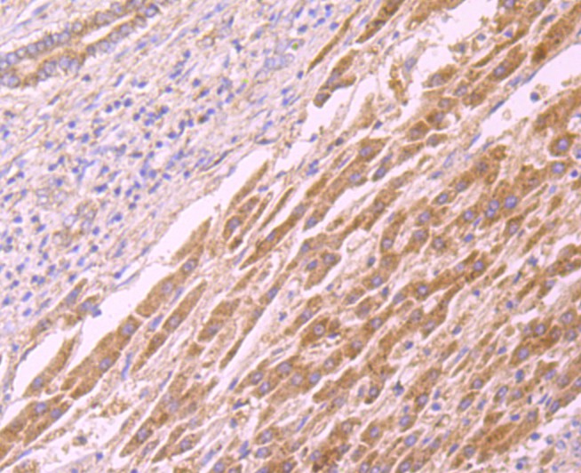 Fig8: Immunohistochemical analysis of paraffin-embedded human liver cancer tissue using anti-CD137 antibody. Counter stained with hematoxylin.