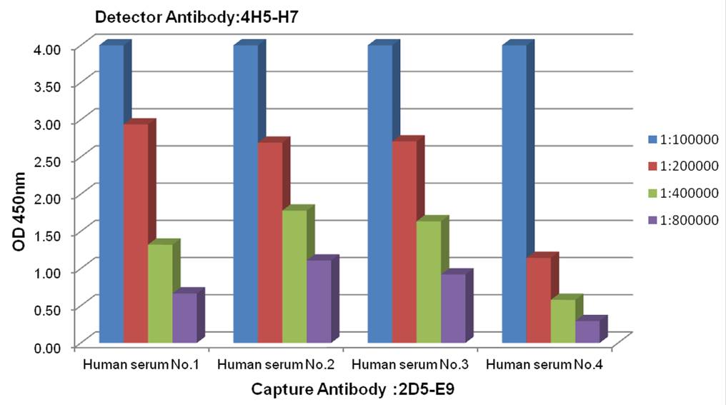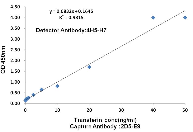 Standard Curve for Transferrin: Capture Antibody Mouse mAb (2D5-E9) to Transferrin at 4u03bcg/ml and Detector Antibody Mouse mAb (4H5-H7) was used for detecting.