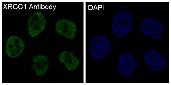 Immunofluorescent analysis of Hela cells, using XRCC1 Antibody .
