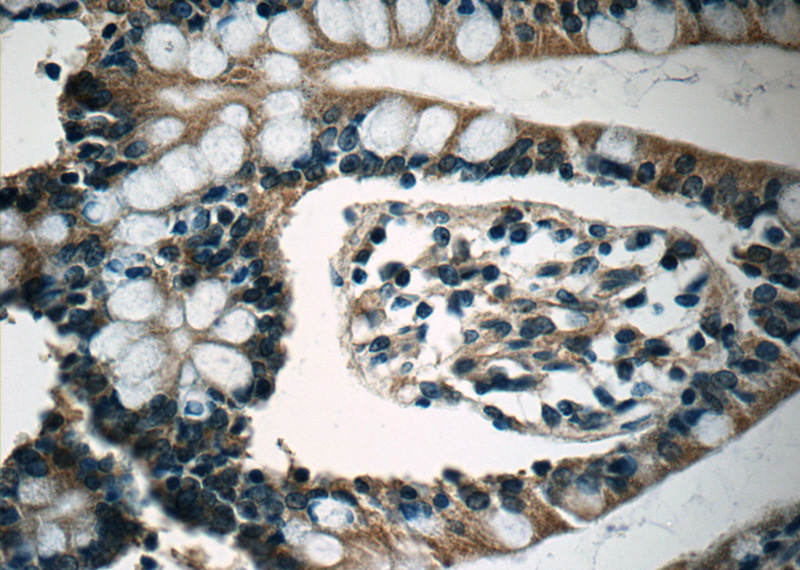 Immunohistochemistry of paraffin-embedded human small intestine tissue slide using Catalog No:108242(ARF1 Antibody) at dilution of 1:50 (under 40x lens)