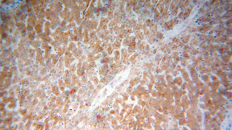 Immunohistochemical of paraffin-embedded human liver cancer using Catalog No:108226(ASGR1 antibody) at dilution of 1:100 (under 10x lens)